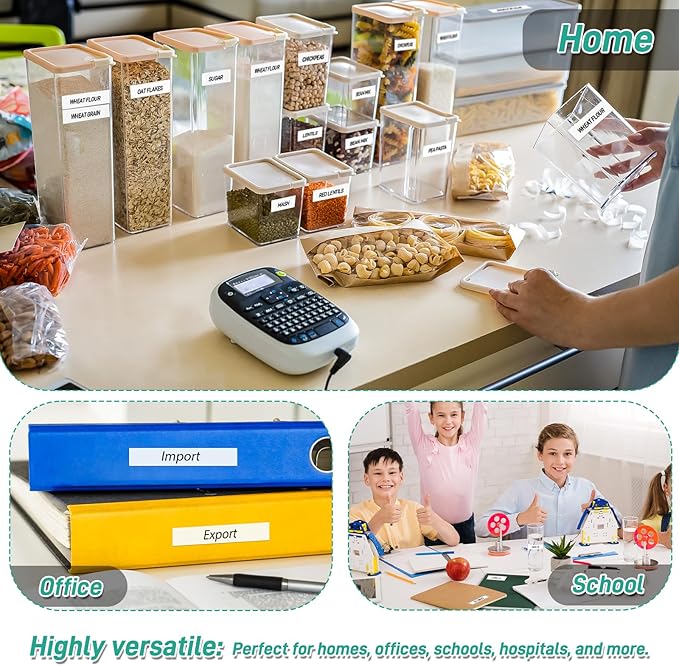 - 💪Wide Applications Label Tape ➤ Compatible with TZe Label Tape (12mm 0.47" laminated black on white tape) widely used in Office supplies, home, business, industrial, retail shop, warehouse, garden and more. These label tape are the efficiency solution for labeling where you need distinguish something information.