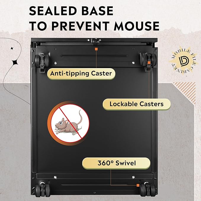 • Add More Mobility: Rolling file cabinet design with two front casters with braking function and one center caster to prevent tipping.