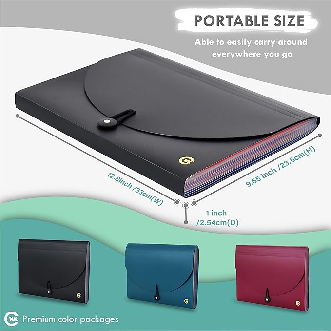 • [Rainbow Colored 13 Pockets] Our Inner Pockets comes in Rainbow Color-Coded helping you to easily organize and quickly identify each tabs.