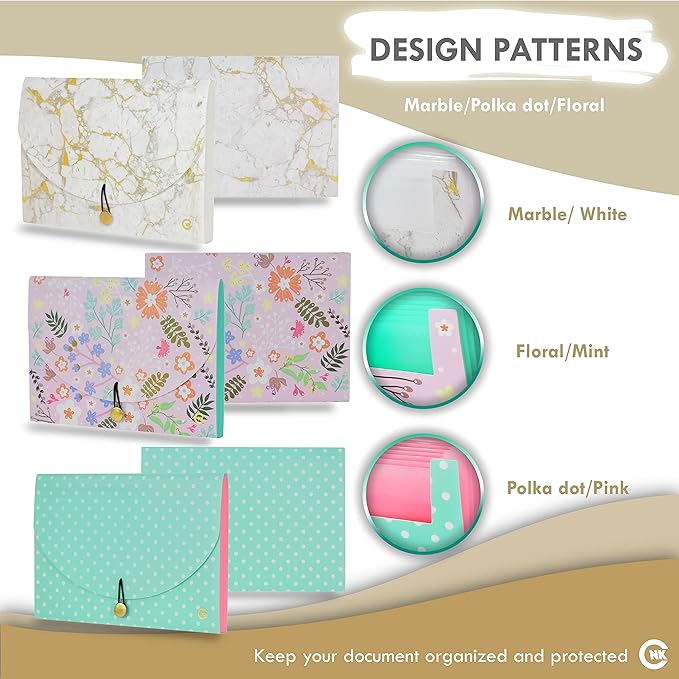 • [Sleek and Stylish Design] Our Sleek and Stylish CNK Accordian File Organizer come in 3-Packs of 13 Pocket expandable file folder with unique hand picked colors that is elegant and stylish.