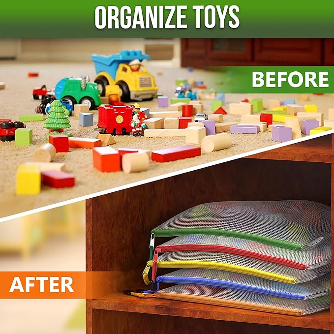 - VERSATILE & PRACTICAL - These mesh zipper bags not only help you to stay organized, but they are also a great solution for storage. They are useful in home storage, documents organization, office supplies management & travel organization.