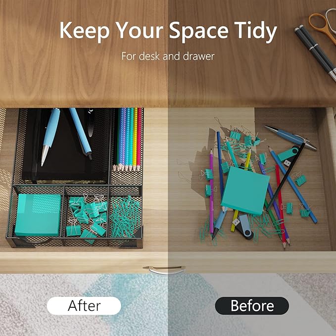 • Perfect Size: This office drawer organizer measures 12.3" x 8.4" x 1.8", making it the ideal size for most standard desk drawers.