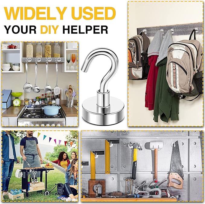 • STEADY WITHOUT DRILLING: This magnetic hooks can be used indoor or outdoor, the school, home, office, workshop, warehouse and garage.