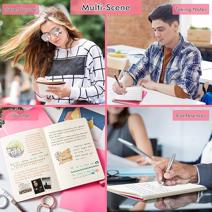 • These travel journals bulk for women have 92 blank lined pages (46 sheets), which would be sufficient for daily usage. The note taking notebooks have a smooth cover, round corners and tight stitching, which are designed to lay 180° flat. Some quick notes can help you remember important dates and find the page you want in a very short time.