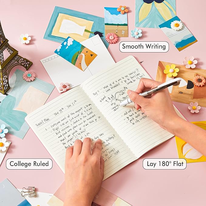 • Feela 8 Pack Soft Cover Journals include 8 pink A5 college ruled soft cover travel journals. 250 GSM colored paper cover outside and 80 GSM smooth writing lined pages inside.