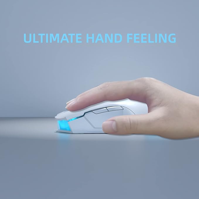 - 【TRIPLE MODE GAMING MOUSE】Wireless modes with stable Bluetooth 5.0 chipset, hassle-free 2.4Ghz dongle plus USB wired mode ensure no limits low latency and stable connection. Multi device connection, one button switching, can be applied to a variety of scenarios, whether it is work games or business trips, to improve efficiency.