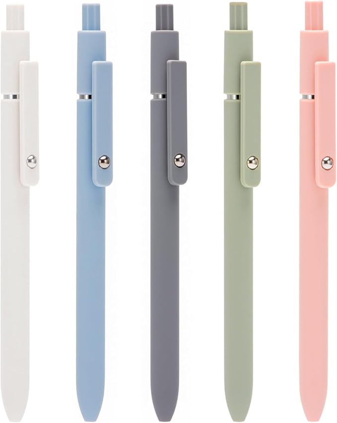 5PCS Retractable Gel Pens Set, Quick Dry Black Ink Fine Point Roller Ball Gel Ink Pen for Smooth Writing (Morandi Color)