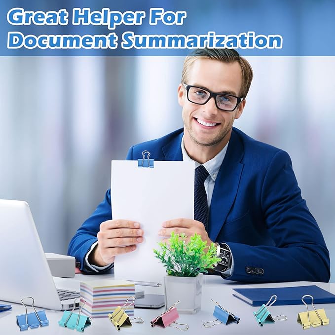 - Easy to Use: paper clips and binder clips help fasten large stacks of loose papers securely together, you just need to press hard on both handles until there is enough room for loose ends that require temporary binding papers; You can easily remove these paper by pressing hard again for ready access to documents, easy and convenient