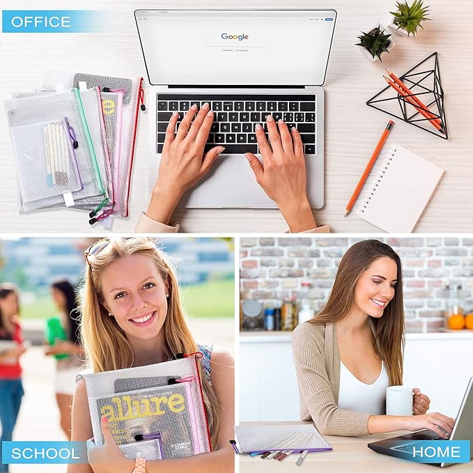• Translucent mesh bags: This clear zippered pouch is perfect for storing important papers,prevents to reveal your privacy, but you still can identify the stuff in the file bags.Suitable for use in homes, schools, college, offices and travel, can be used to organize books, paper,photos, bills, cosmetics,etc.