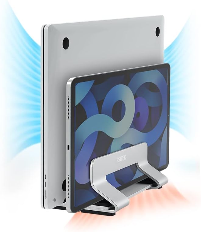 • Space-Saving and Organized: Store your laptop or MacBook vertically with the Psitek Aluminum Dual Vertical Laptop Stand Dock Holder to free up desk space and keep your workspace organized.