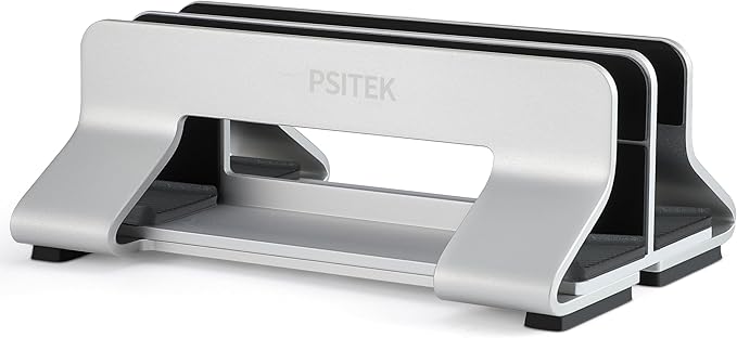 • Stylish and Practical: The Psitek Aluminum Vertical Laptop Stand Dock Holder's sleek and modern design adds a touch of style to your workspace. Perfect for use as a desk laptop holder, laptop dock stand, laptop holder stand, or vertical laptop stand.