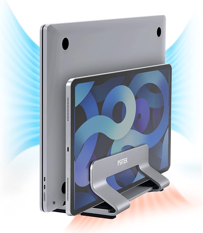• Space-Saving and Organized: Store your laptop or MacBook vertically with the Psitek Aluminum Dual Vertical Laptop Stand Dock Holder to free up desk space and keep your workspace organized.