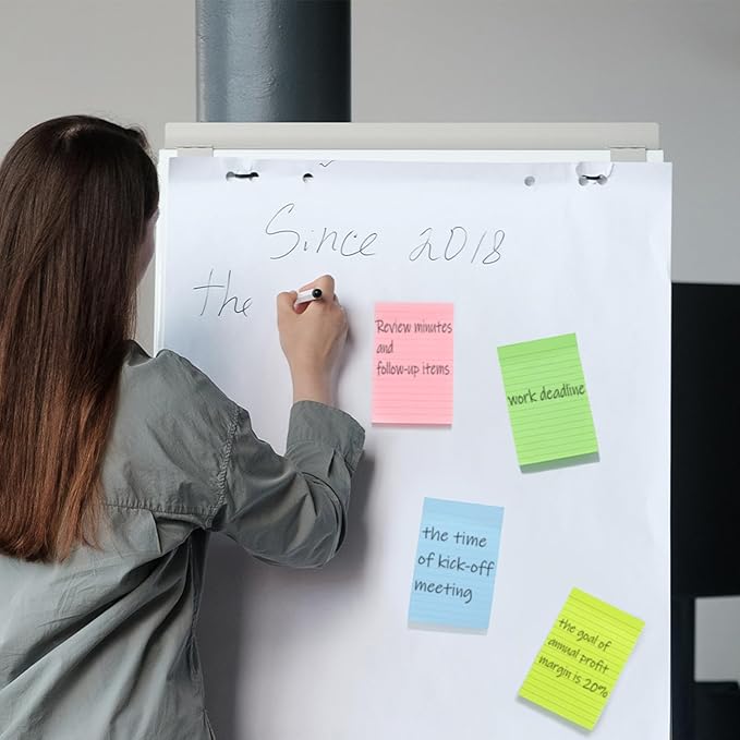 • <br>Package: Comes with 24 packs 4" x 6" lined sticky notes,6 light assorted color, each color for 4 packs, 50 sheets/pad. 1200 sheets in total. Enough quantity for daily use.