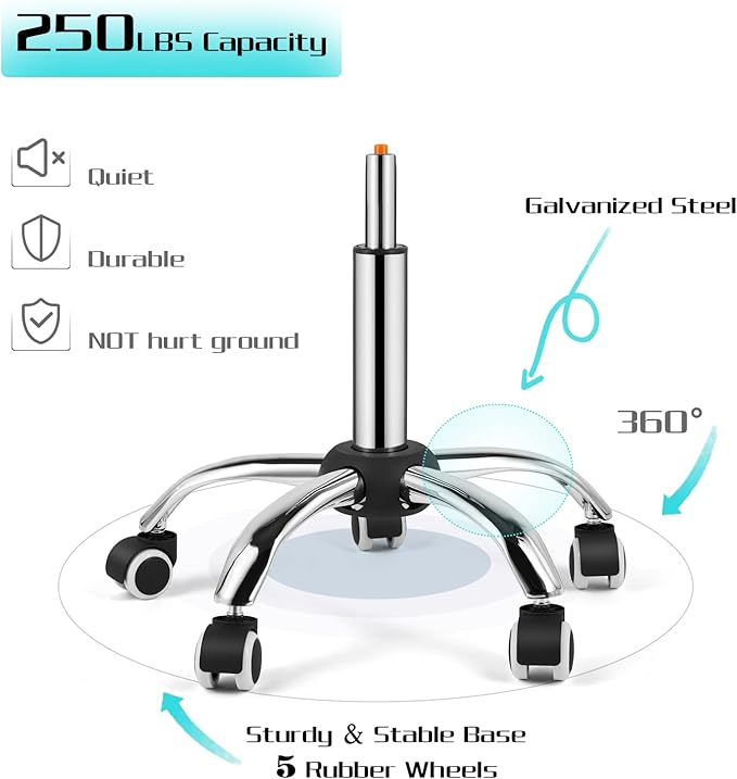 - 250 LBS LOADING CAPACITY - 5 star base with shiny chrome metal features excellent rust resistance and durability and provides good support.