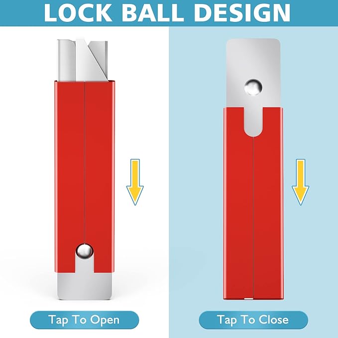 - Fast-paced Operation: Tap to open, tap to close, and the blade slides completely into the outer mental sheath. And it’s a razor blade utility knife that can be used as a razor scraper for scraping off stickers or paint residue on windows, tiles, boxes, concrete, and walls.