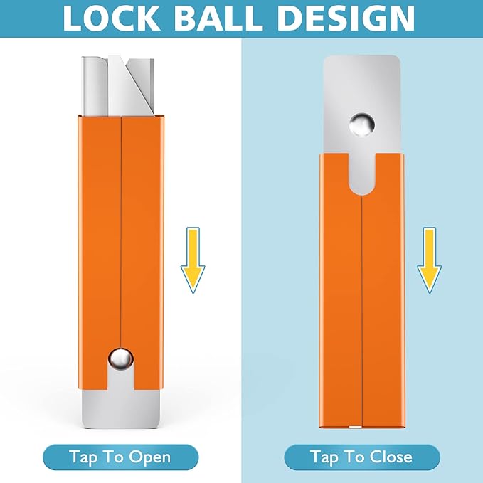 - Fast-paced Operation: Tap to open, tap to close, and the blade slides completely into the outer mental sheath. And it’s a razor blade utility knife that can be used as a razor scraper for scraping off stickers or paint residue on windows, tiles, boxes, concrete, and walls.