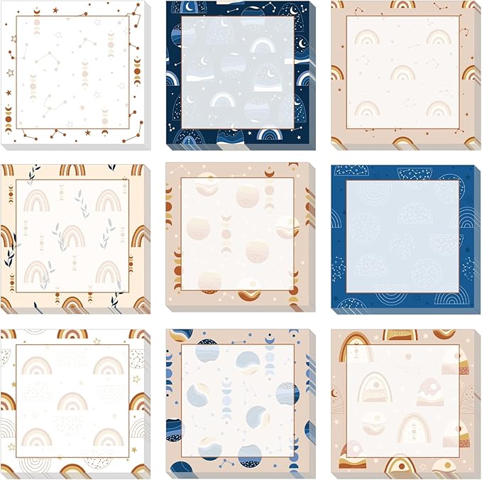 9 Pieces Boho Sticky Notes Boho Rainbow Self-Adhesive Note Pads Sticky Memo Notes for School Office Home Supplies Students Teachers Presents