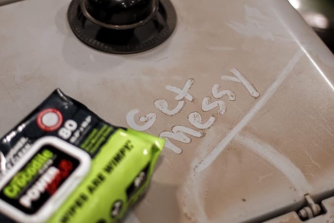 • Hand Safe: Crocodile Cloth wipes are dermatologically tested and infused with aloe and vitamin E to be safe for your hands while eating through grease and oil. Every disposable wipe is formulated to stay wet outside the package for over an hour.