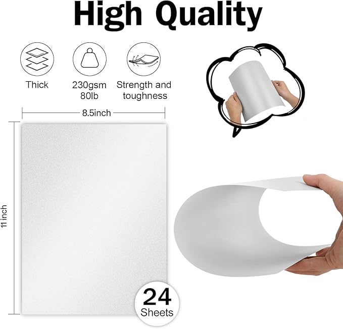 • Paper Dimension: Each package includes 24 sheets of silver cardstock paper, measures 8.5 x 11 inches in size, 230 grams in weight