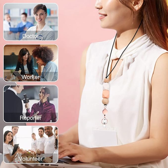 • 【Quality】Lanyards for id badges is made of high-quality wood, the beads are beautiful in fresh color and very textured, and the rotatable buckle connecting the badge holder is made of high-quality alloy.