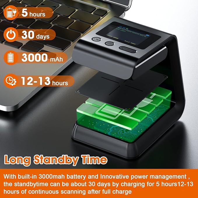 - 3000mAh battery : Large built-in 3000mAh battery , Superior battery power management delivers the largest number of scans per battery charge to support scan intensive applications . for the ticket window at a train station airport and so on.