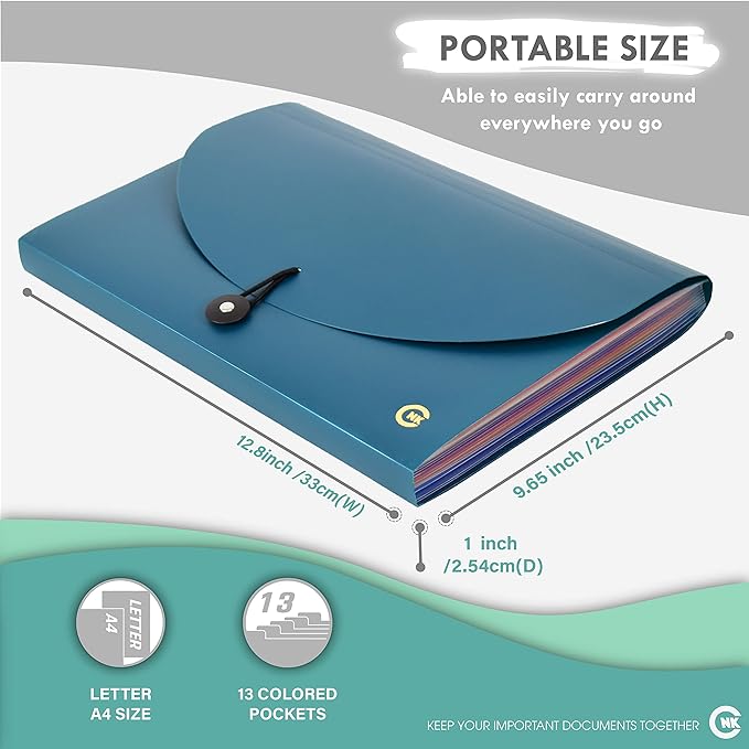 • [High Quality Material] Our 13 Pocket Expanding File Folder is made from quality PP Plastic material, Acid-Free, PVC-Free to ensure durability, water resistant and long lasting cover from every uses.