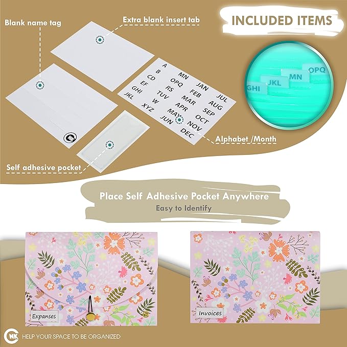 CNK File Folders Organizer with 13 Pockets Accordion Expanding Folder For Documents Receipt Document Paper Pocket Filing Products Accordian Important expandable holder files alphabetical Labels Letter