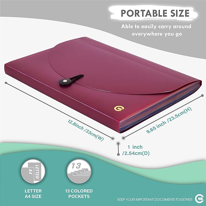 • [High Quality Material] Our 13 Pocket Expanding File Folder is made from quality PP Plastic material, Acid-Free, PVC-Free to ensure durability, water resistant and long lasting cover from every uses.