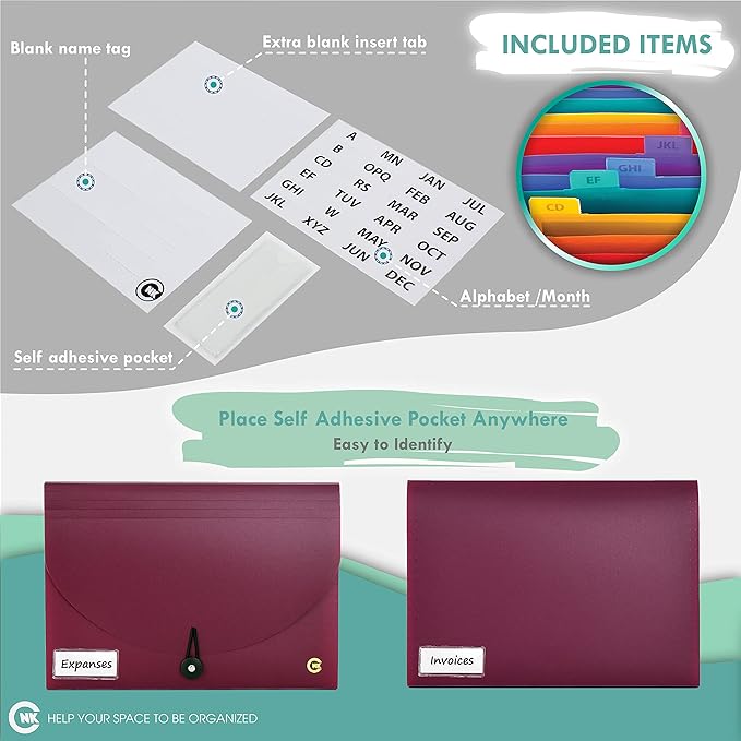 CNK File Folders Organizer with 13 Pockets Accordion Expanding Folder For Documents Receipt Document Paper Pocket Filing Products Accordian Important expandable holder files alphabetical Labels Letter