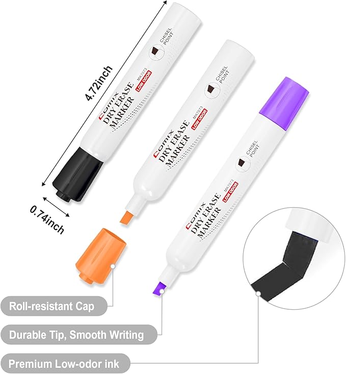• Low-odor & Non-toxic: Comix dry erase markers are smear-proof, non-toxic, water-based and are made to low-odor, which is safe for use. Comforms to ASTM D-4236
