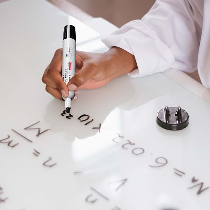 • Quick-Drying and Easy to Erase: The whiteboard markers is perfect for recise writing on non-porous surfaces such as whiteboards, glass, porcelain etc. With water-based ink, it is easy to wipe off without leaving stains and ghosting on whiteboard.