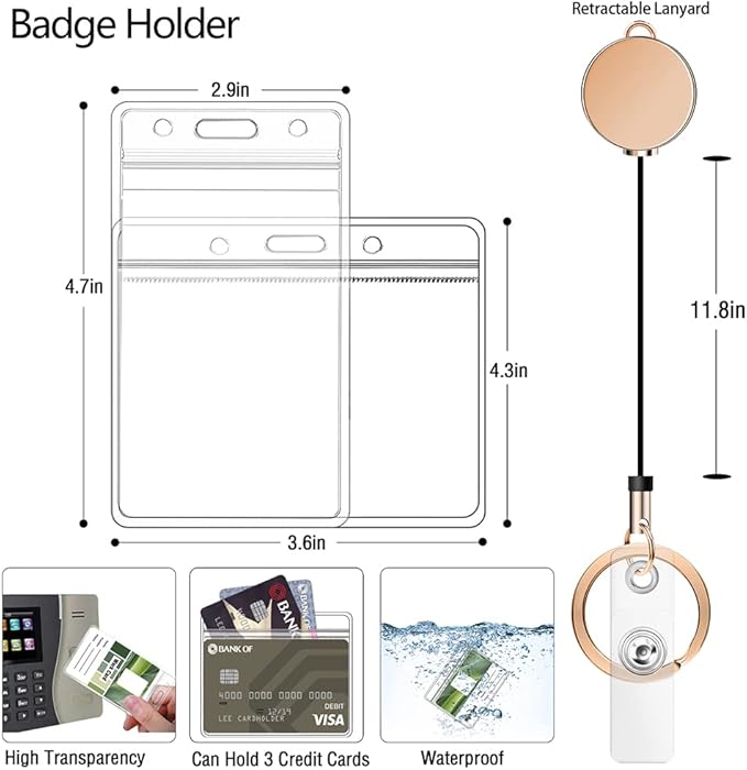 - 【Waterproof Dustproof & Soft Sturdy】Our horizontal and vertical badge holder card pouches are waterproof. can easily hold 3pcs credit card size cards. The name badge holder is made of premium PVC material, non-toxic, odorless. Both sides of each badge holder are transparent which makes scanning ID seasy
