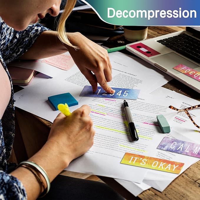 80 Pcs Anxiety Sensory Stickers with Inspirational Quotes Calm Textured Strips Relief Mental Health Stickers School Office Adhesive Sensory Tape Anti Stress Toys for Adults Teens (Watercolor)
