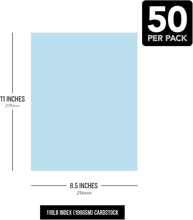 8.5 x 11" Blue Pastel Color Cardstock Paper - Great for Arts and Crafts, Wedding Invitations, Cards and Stationery Printing | Medium to Heavy Card Stock 110lb Index (199gsm) | 50 Sheets per Pack