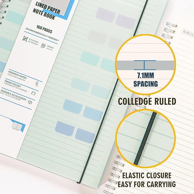 • DURABLE SPIRAL BOUND: High quality of spiral bound is used on this spiral bound notebooks 5.9 x 8.3 with 160 pages/80 sheets. This durable spiral bound can protect your note taking and provide very smooth way to flip pages.