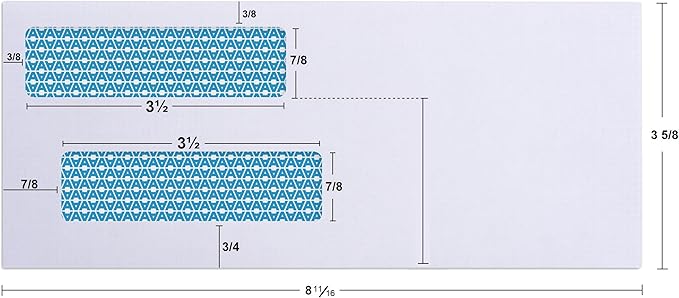 • ✉️ DUAL WINDOW CUSTOM DESIGNED FOR MAILING BUSINESS CHECKS: Top Window height is 7/8 inch X 3-1/2 inches wide and is positioned 3/8 inch from the left and 2-3/8 inch from the bottom, Bottom Window height is 7/8 inch X 3-1/2 inch wide and is positioned 7/8 inches from the left and 3/4 inches from the bottom