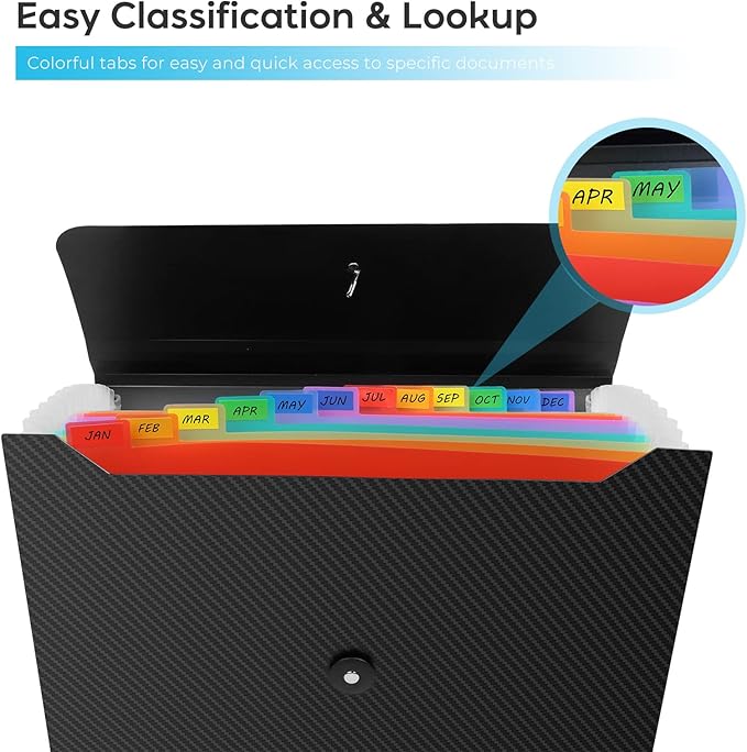• 【COLORFUL DESIGN】Our expandable file folder features rainbow-colored inner pages and small colored labels for easy classification, making it both functional and visually appealing