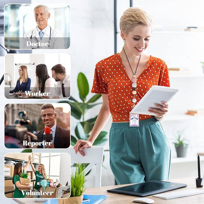 • 【Material】Beaded lanyard is made of high-quality wood, the beads are beautiful in color and texture, and can be matched with different outfits; the rotatable buckle that connects the badge holder is made of high-quality alloy, which is durable.