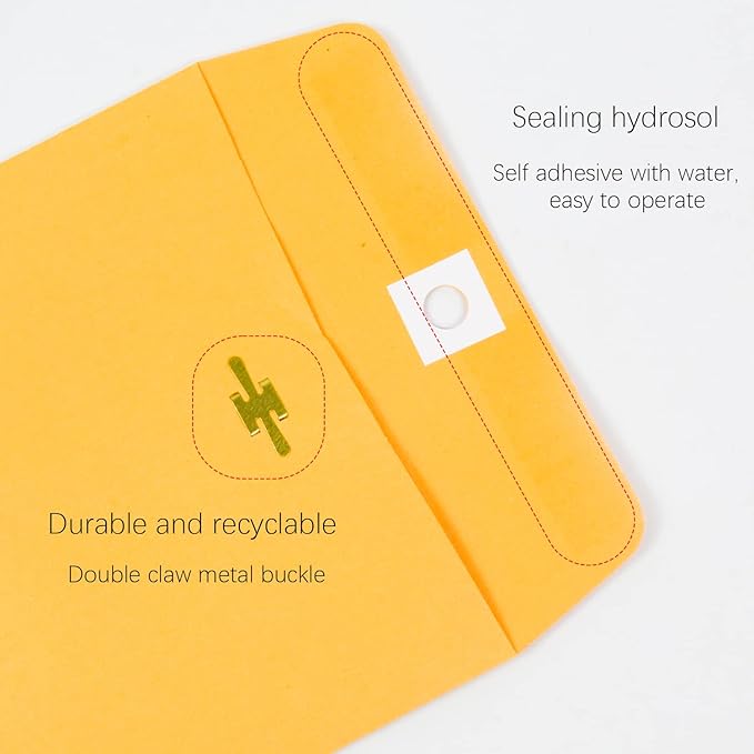 • Two-layer seal: 2-prong metal buckle and reinforced eyelet seal, recyclable, inner rubber seal with water-soluble glue, double-layer seal provides security for your items and documents