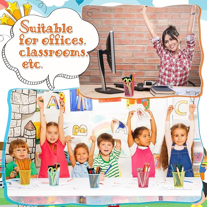 - Useful Mesh Design: the mesh design of colored pencil holder makes it easier for you to find your small things quickly, pretty colors and classic design can match many scenes, office, school, classroom, library, home, it helps organize various office stationery, such as pencils, pens, markers, rulers, erasers, scissors, makeup brushes and so on