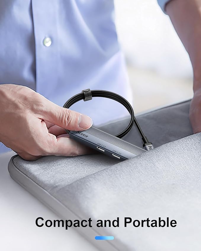 - 【3.3ft Long Cable + Velcro Closure】Upgraded USB 3.2 Gen 2 Hub has 3.3ft long cable is convenient for you to extend the USB port from the computer under desk or all in 1 PC. Use Velcro closures to organize excess cables.