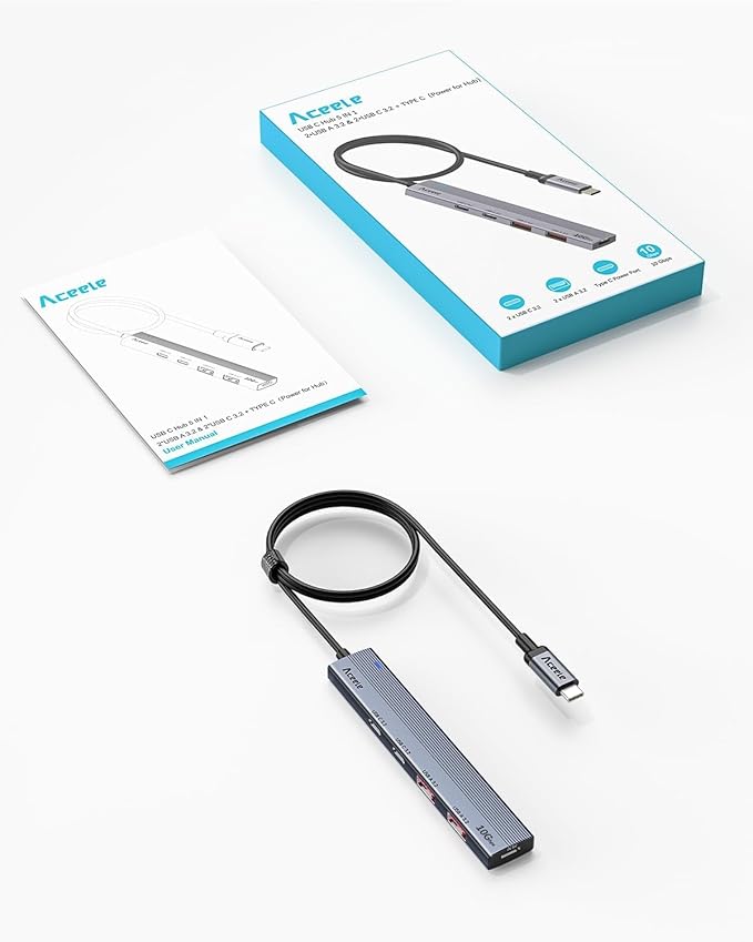 Aceele 10Gbps USB C Hub with 4 USB 3.2 Ports (2 USB A & 2 USB C), USB 3.2 Gen 2 3.3ft USB Cable Extender Hub with Type-C Power Port,Compatible for MacBook Pro 2021, iPad Pro 2021 and Other PC