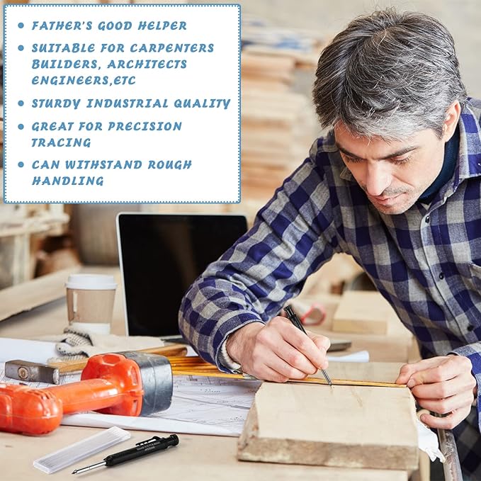 - Practical and Useful: the construction mechanical pencil provides stable lines and clear handwriting when writing, which can be applied for marking, drawing, woodworking, fabrication and so on, a great addition to carpenter tool bag or a great gift for a carpenter, metal fabricator, construction architect, handicraft enthusiast