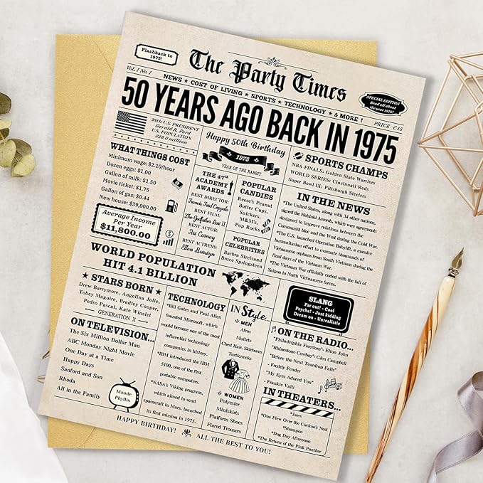 50th Birthday Card, 50th Birthday Gifts for Women Men, 50th Birthday Decorations for Him Her, Back in 1975 Birthday Card