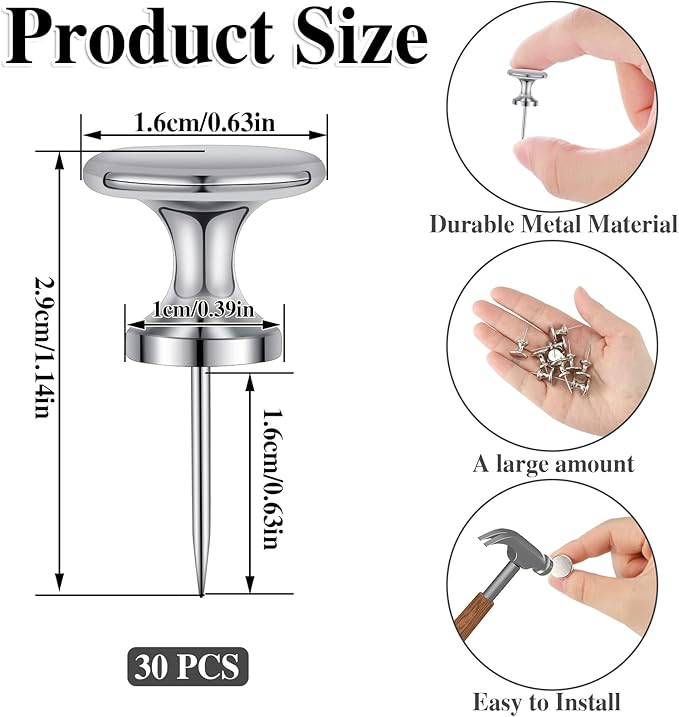 • 【Package Includes】You will receive 30 large silver push pins with a reusable plastic box, convenient to store your pushpins without taking up much space, you can take them with you wherever you go