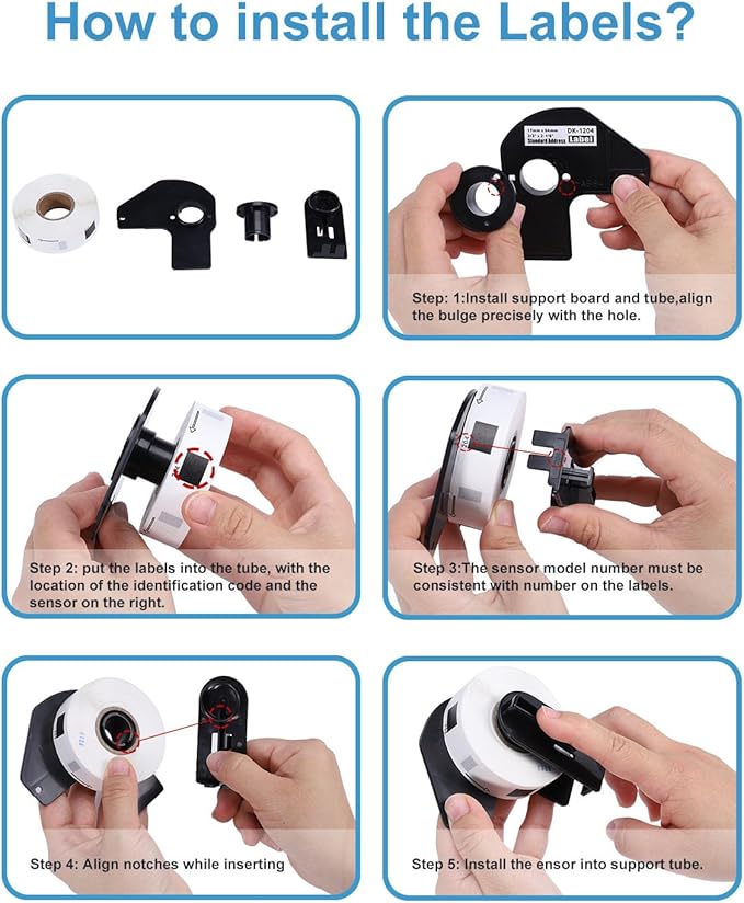 • DK-1204 Direct Thermal Labels, self-adhesive labels, 10 rolls with 2 reusable refillable cartridge. Non-OEM Replacement for brother DK1204 multipurpose, die cut small return address Labels