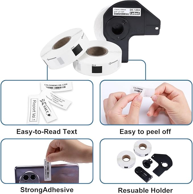 COLORWING Labels Compatible for Brother DK-1204 (0.66" x 2.1"), Multipurpose Return Address Die-Cut Label Roll, Use with QL 700 810w 820nwb Printers (10 Rolls + 2 Frame)