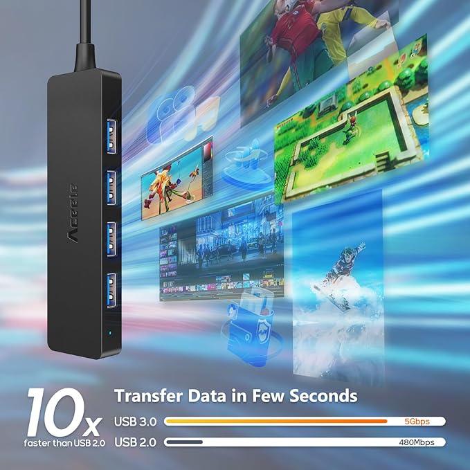 - 5Gbps High Speed Data Transfer: The Mac USB hub supports data transfer rates up to 5Gbps (10 times faster than usb 2.0) and can transfer a HD movie in seconds. ⛔ (Note: This hub is not designed to charge devices!).