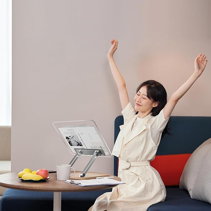 • Adjustable and Stable: Our book holder is adjustable and stable, thanks to its aluminum alloy double-pole support. Easily switch between different usage modes, adjusting the height and angle to suit your needs.
