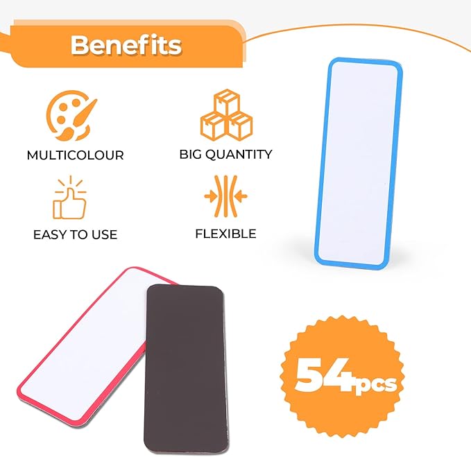 54pcs Magnetic Dry Erase Labels Colorful Name Tags Flexible Reusable Magnetic Label Stickers for White Board Refrigerator Locker Size 3.2"x1.2" by Mositear